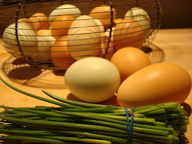 Besides the fact that I adore eggs in any shape or form, they also go really well with chives. I thought about making an omelet with Cheese and Chives or Scrambled Eggs with Cheese and Chives and before chive season is over I'll probably make both those things but today I'm in the mood for deviled eggs, my all time favorite forbidden food.